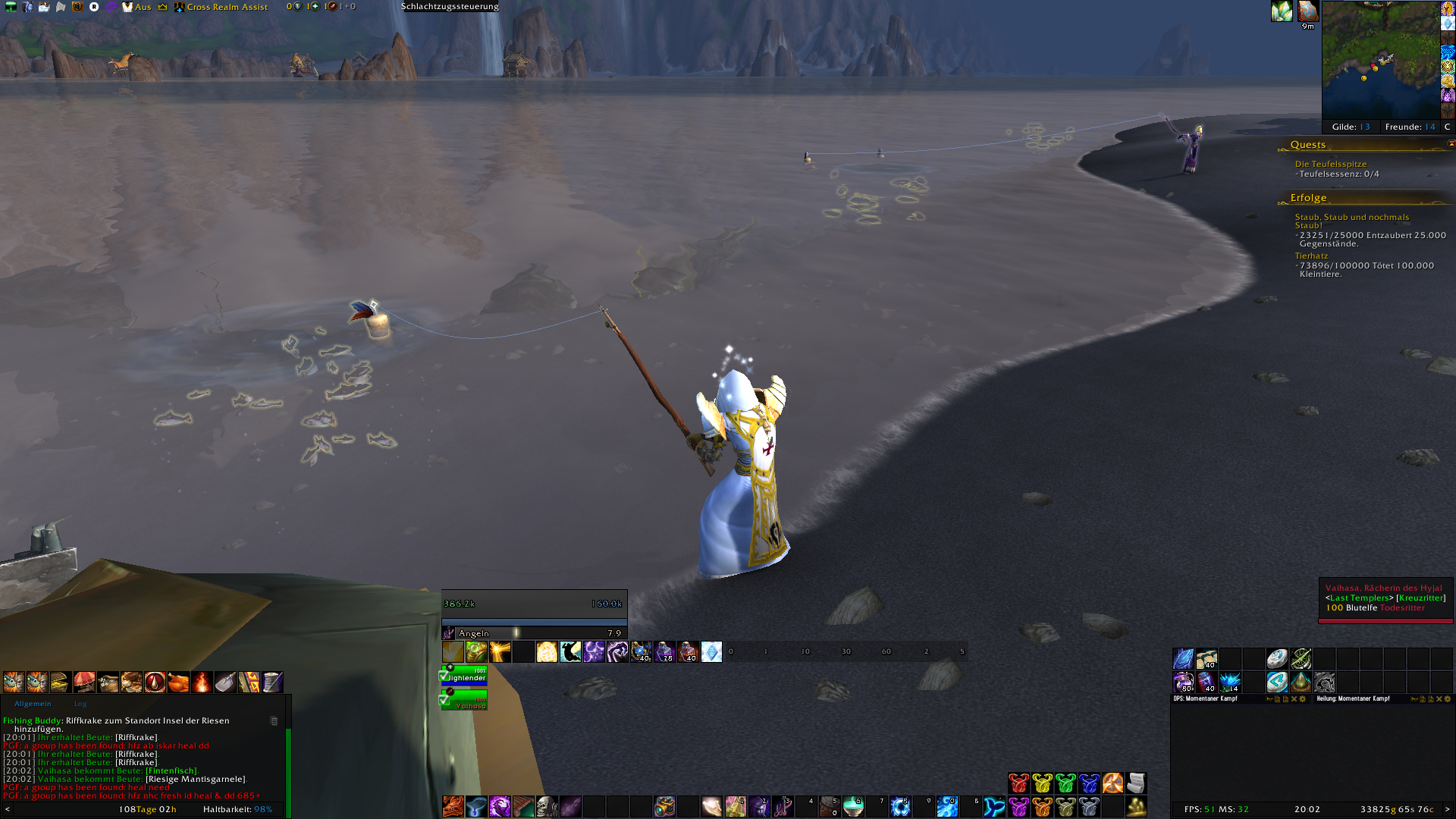 Wo ich schon von Erfolgen fasel... Bitte schaut mal nach den Gildenerfolgen "Tierhatz" und "Staub, Staub und nochmals Staub". An denen wird gerade hart gearbeitet. Ebenso an den Fisch-Erfolgen...